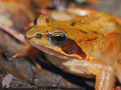 El pasado lunes 11 de Octubre por la tarde me di una vuelta por mis queridos bosques de Güemes en busca de la interesante herpetofauna que allí habita. Uno de los objetivos era comprobar si las Ranas bermejas (Rana temporaria) ya estaban con el celo. De paso estrenaba mi nuevo objetivo macro 105mm Vr de nikon. Antes de anochecer me encontré con este ejemplar con un aspecto un tanto tísico, la verdad, pero con una coloración bastante atractiva (para mí al menos)...